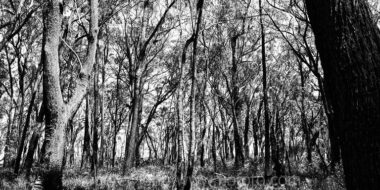 Gibbergunyah bushland, New South Wales, Southern Highlands, Australia. Black and white photo image from the Australian bush.